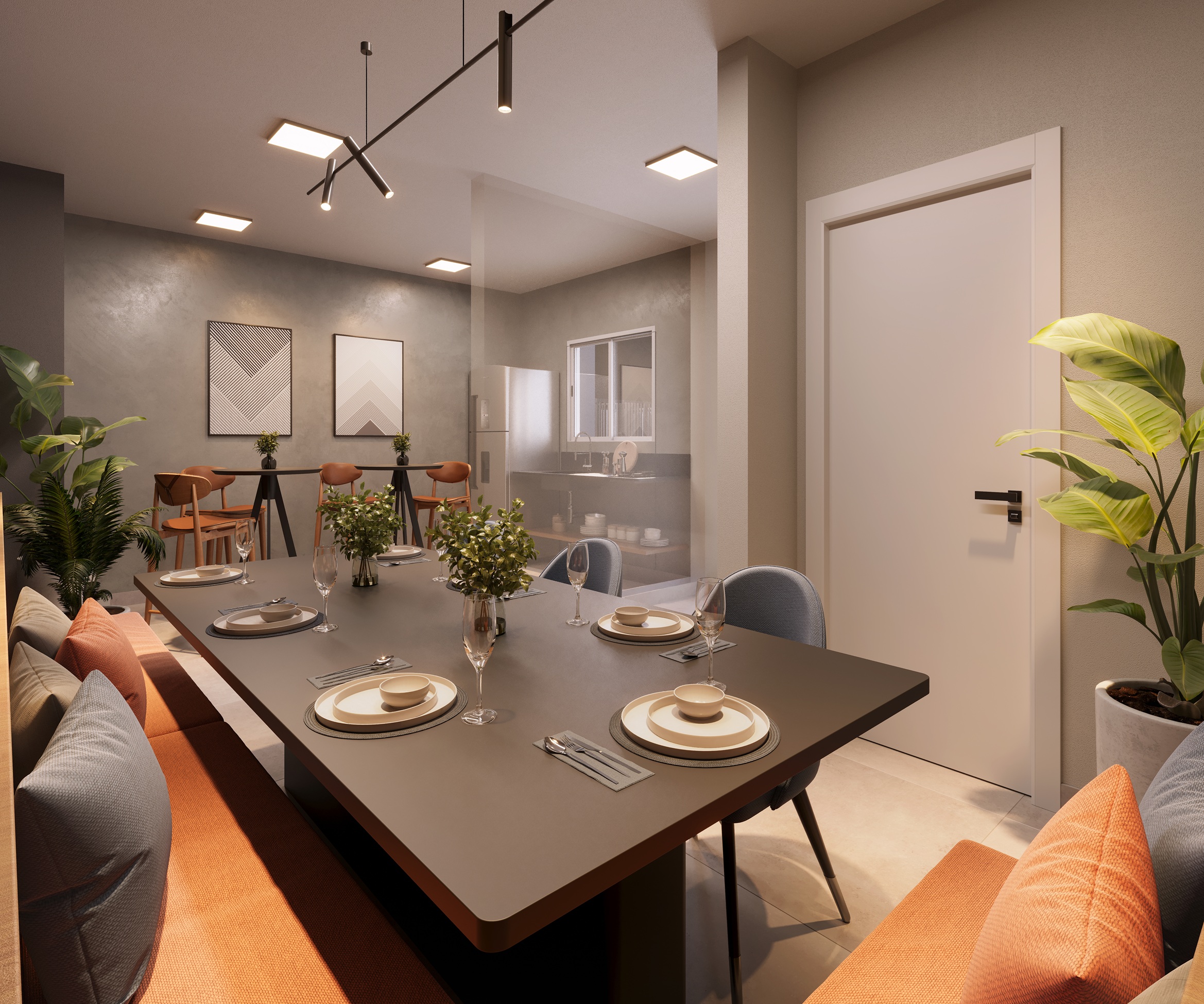 Imagens meramente ilustrativas, podendo sofrer alterações devido à rede elétrica não estar representada. Por se tratar de bem a ser construído, pode sofrer alteração sem aviso prévio. As perspectivas e ilustrações artísticas mostram ambientes e vegetação de porte adulto. Consulte memorial descritivo da sua unidade.