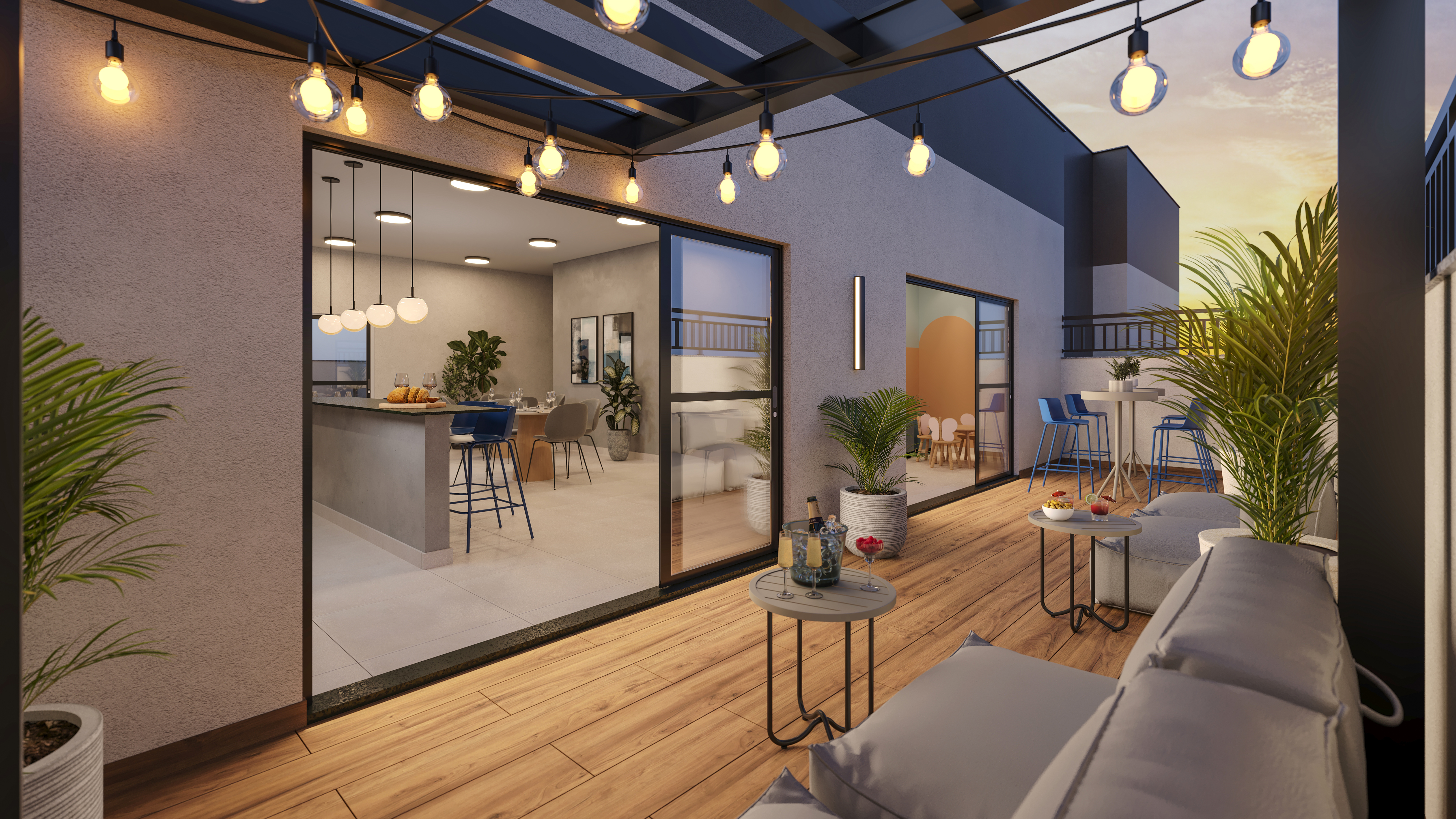 Imagens meramente ilustrativas, podendo sofrer alterações devido à rede elétrica não estar representada. Por se tratar de bem a ser construído, pode sofrer alteração sem aviso prévio. As perspectivas e ilustrações artísticas mostram ambientes e vegetação de porte adulto. Consulte memorial descritivo da sua unidade.